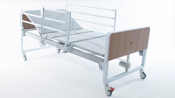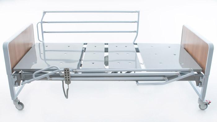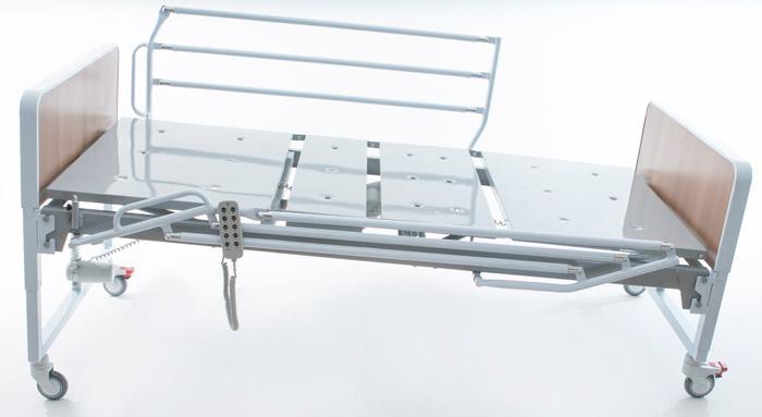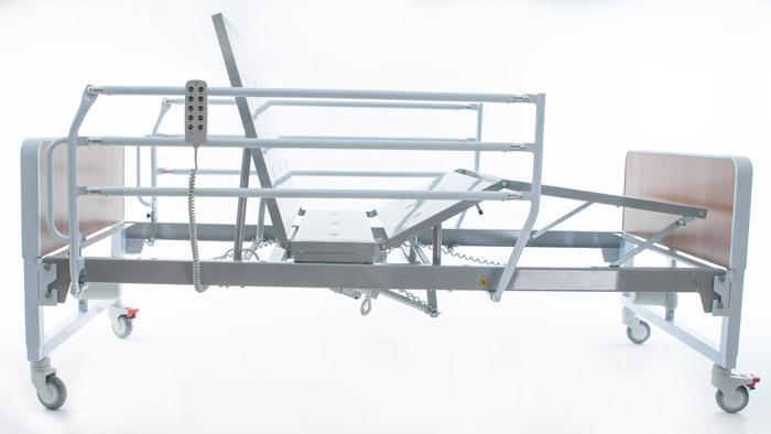 Cama tipo elétrica, com estrado em chapa, pintura eletrostática, 05 movimentos: Dorso 70 a 74º, Pernas 24 a 26 º, Variação de altura (200 mm), Trendelemburg -5,5° e Reverso 5,5 °, todos por controle remoto. Cabeceira e peseira em fórmica, acompanha colchão e grades dobráveis, altura mínima em relação ao solo 55 cm e altura máxima 70 cm, já com colchão, voltagem bivolt, capacidade de peso até 180 kg.
