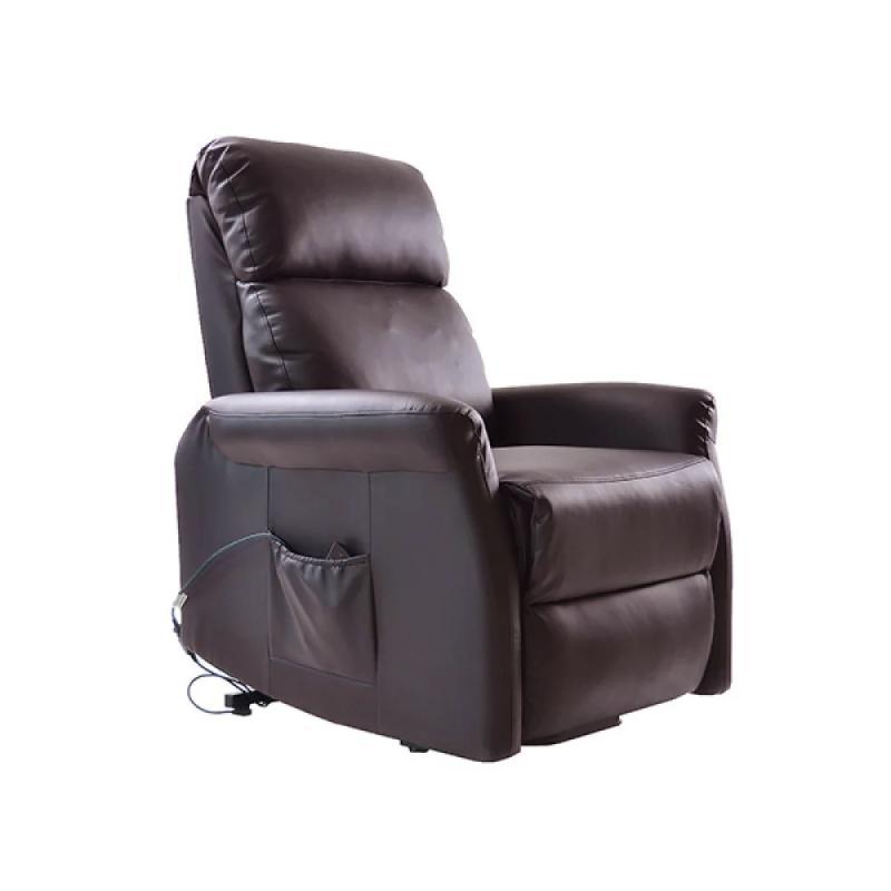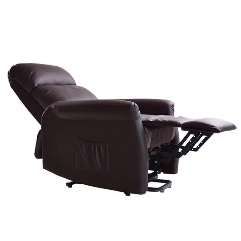 Poltrona reclinável, motorizada, extensível, confortável, com elevação do assento para facilitar a saída. O apoio para as pernas/pés eleva-se à posição horizontal e o encosto, mais alto e confortável para total relaxamento. Ideal para pessoas que tenham mobilidade reduzida devido a trauma, pós-operatório ou à melhor idade. Tudo operado facilmente, por um novo controle remoto, de fácil manuseio e rápida movimentação, para maior conforto do usuário. Disponível na cor marrom escuro (chocolate). Bivolt.